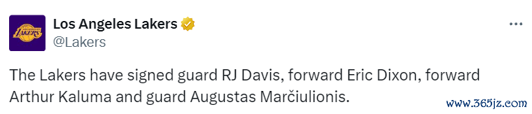 湖人官宣连签4人! 均为练习 营非保障合同 现有阵形 14+2还有名额
