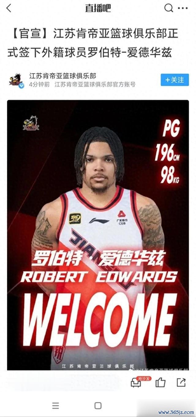 据CBA江苏肯帝亚男篮今天上午官方的最新消息,该队已经正式签下了上赛季曾效力于新疆男篮的小外援罗伯特-爱德华兹,这顿时引起了球迷的热议!根据资料结束,爱德华兹上赛季曾短暂效力于新疆男篮nba赛程,后来表现不佳被球队在季后赛前裁掉,随后转战波多黎各职业联赛 ,现在被江苏队签下,确实出乎了球迷的意料,不得不说,葡超新闻网江苏队怎么突然有钱了?