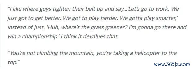 约翰-斯托克顿表示:“我更欣赏球员们系紧裤腰带表态:'让我们埋头苦干!只需变得更强、打得更拼、策略 更聪明。' 而不是轻率决定:'嘿,葡超新闻网哪儿的草更绿?我要去那儿拿第一名 。' 这种行为贬低了第一名 的含金量。你这不叫攀登高峰, 篮球新闻英超直播是坐直升机直达山顶。”