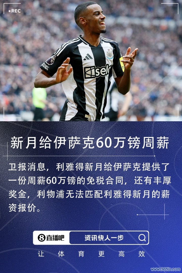 07月26日讯 卫报最新消息,利雅得新月给伊萨克提供了一份周薪60万镑的免税合同!