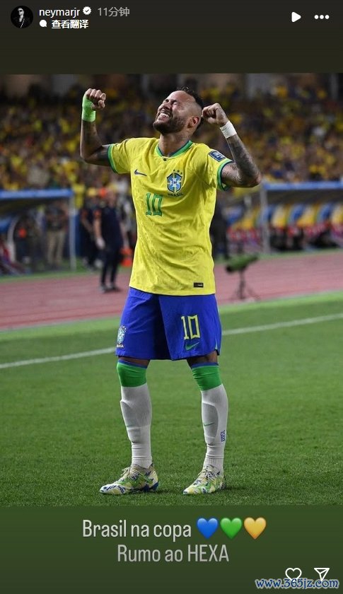 赛后33岁的巴西射手王内马尔发文祝贺巴西:挺进世界杯赛 , 风云体育网足球直播冲击第六冠。