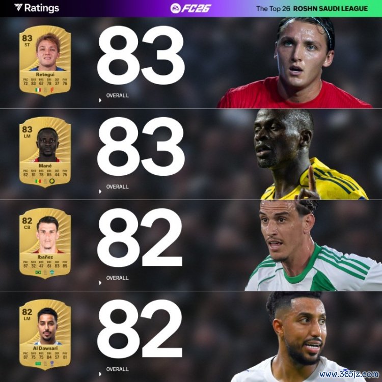 9月10日讯 EA SPORTS官方列FC26沙特联球员评分五洲四海,葡超新闻网法甲直播C罗、本泽马、坎特、伊尼戈85分最高。