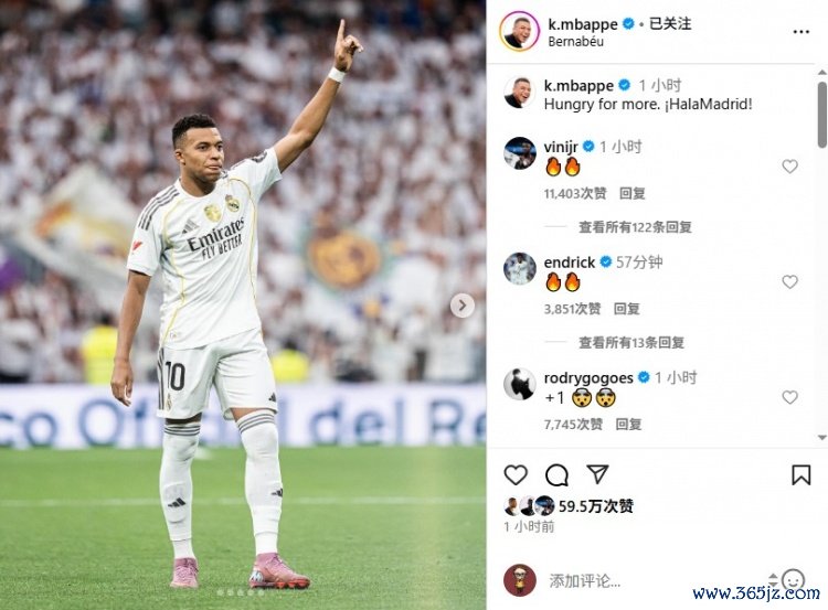 姆巴佩本场赛事 打入一球, 风云体育网西甲直播他写道:“渴望更多,葡超新闻网Hala Madrid!”