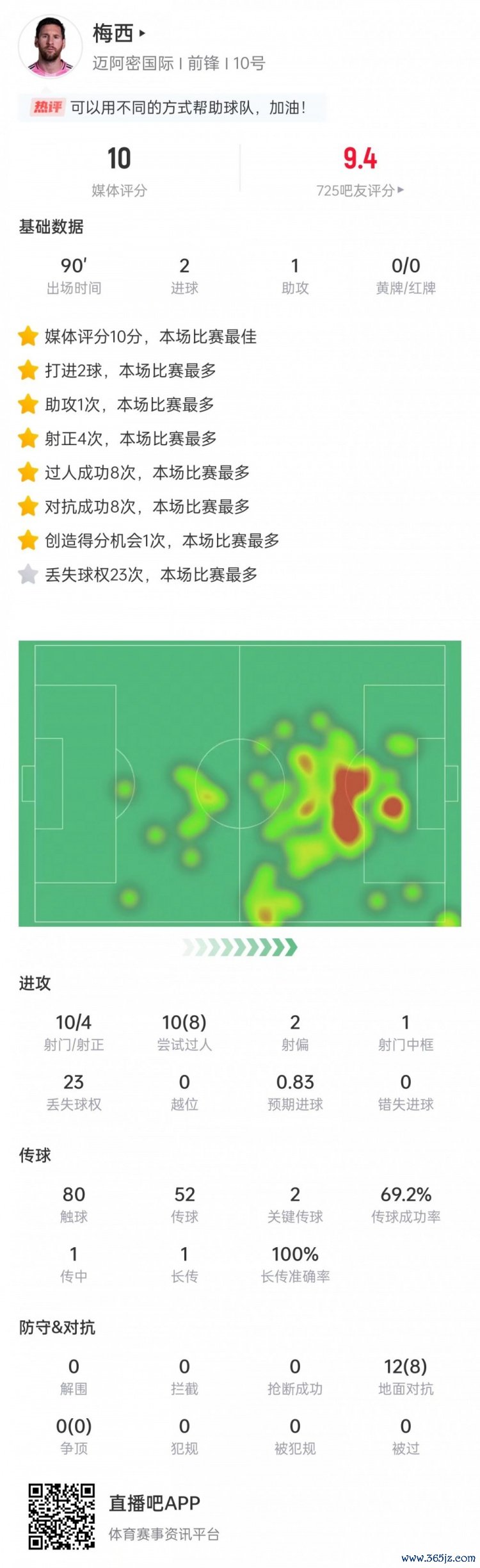 梅西本场赛事 数据: