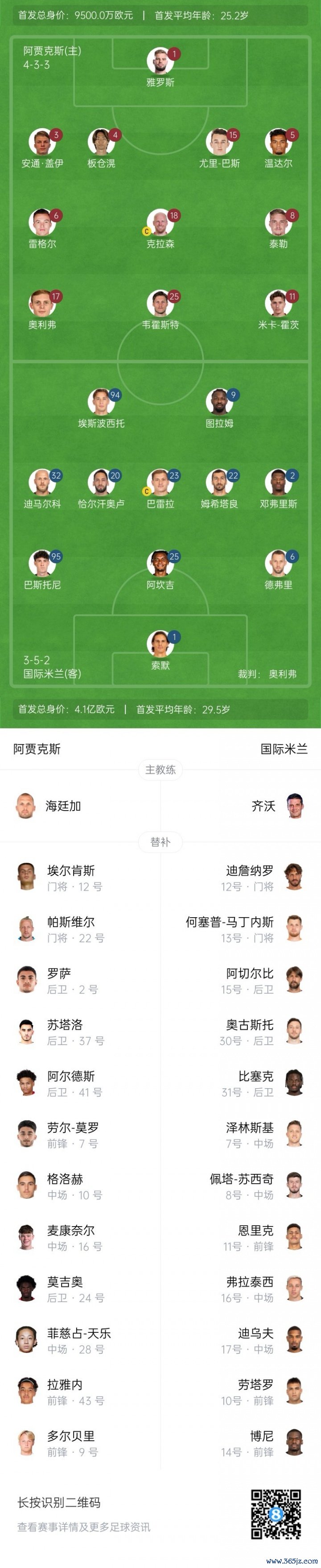 9月18日讯 欧冠职业联赛 阶段第一轮, 篮球新闻体育赛事阿贾克斯主场作战 迎战国米赛事 即将打响。赛前杆位出炉。
