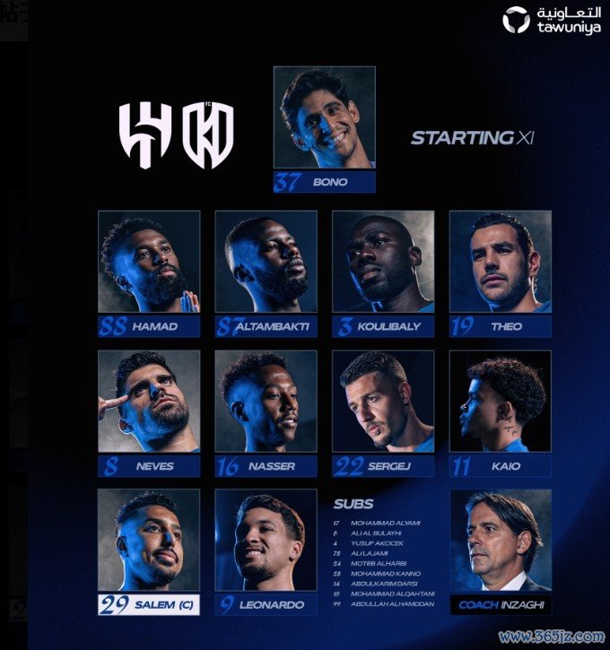 37-布努、88-哈马德-亚米、87-坦巴蒂、3-库利巴利、19-特奥、8-内维斯、16-纳赛尔-多萨里、22-米林科维奇、11-卡伊奥、29-萨利姆-多萨里、9-莱昂纳多