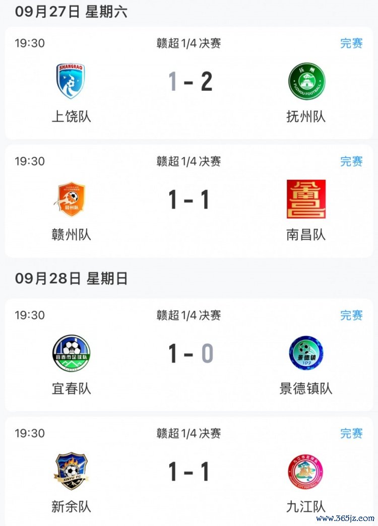 赣超四强出炉:北区九江队独苗,南区宜春队、赣州队、抚州队晋级下一轮