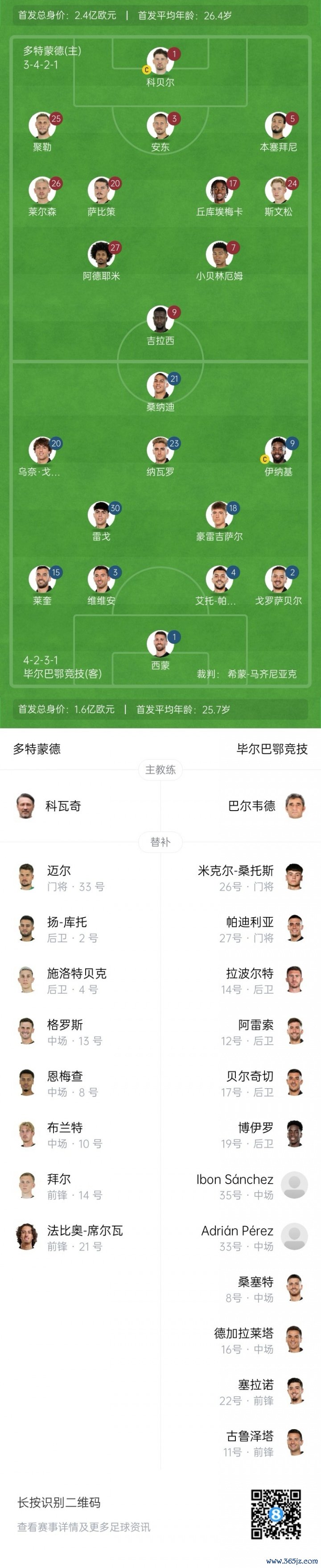 多特vs毕尔巴鄂杆位:小贝林厄姆、阿德耶米先发,萨比策出战