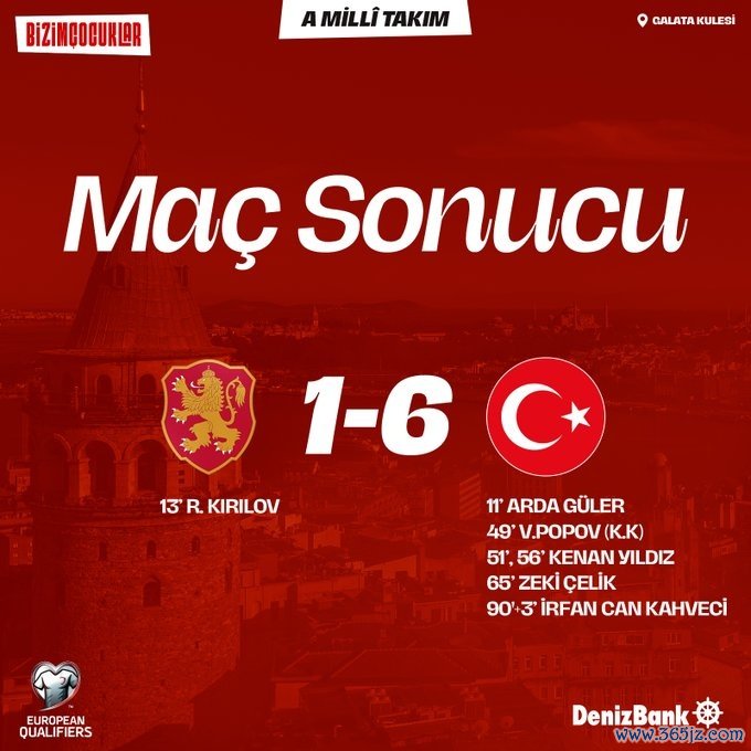 世预赛-土耳其6-1大胜保加利亚,伊尔迪兹连进两球、居莱尔传射