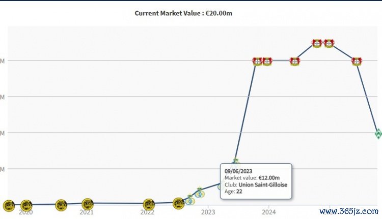 10月14日讯 德转更新球员身价,24岁前场球员博尼法斯从4000万欧跌至2000万欧。