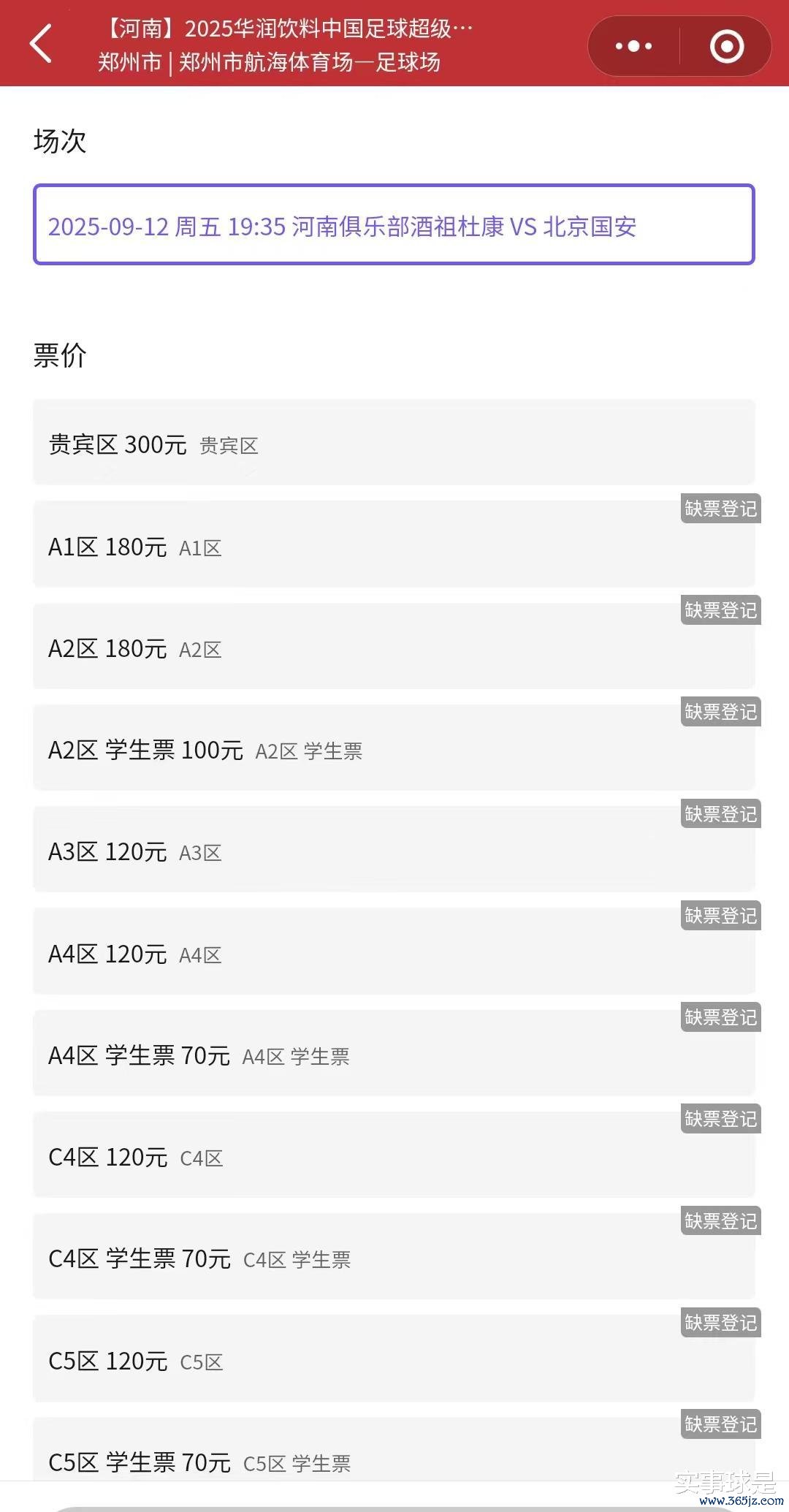 根据公告,河南队与北京国安的这场“南北大战”,球票分为4个档次,分别是:60、120、180、300,开票时间为9月9日15:30,但一经开票, 风云体育网票几乎瞬间就被抢没了。15:50,葡超新闻网登录购票小程序可以发现, 篮球新闻包括贵宾区在内的所有档次的球票,都显示缺票登记。为此,有球迷问道:还会再增加球票吗?