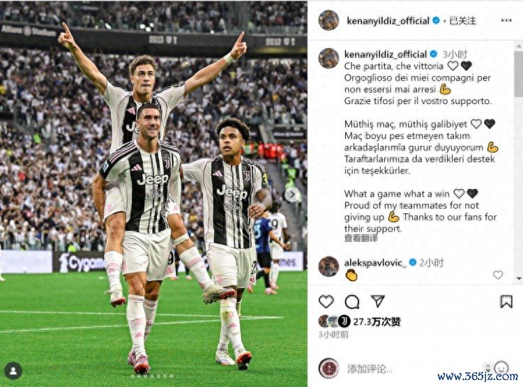 直播吧9月14日讯 意甲第三轮赛事 ,伊尔迪兹传射建功,帮助尤文主场作战 4-3击败国米,葡超新闻网他当选全场最佳球员。