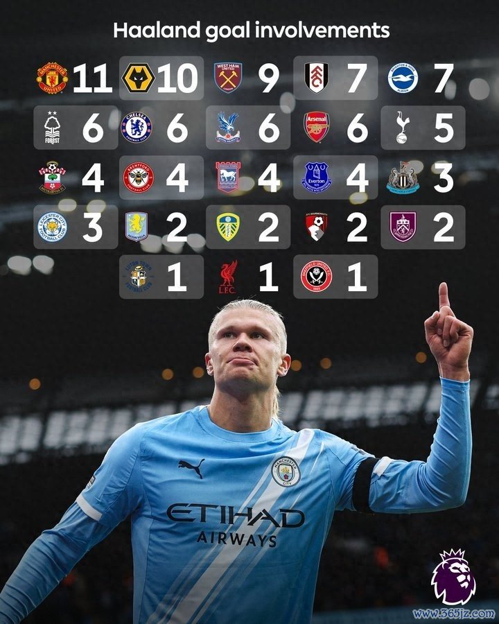专打红魔! 哈兰德对曼联已直接加入 11球, 比其他任何英超对手都多