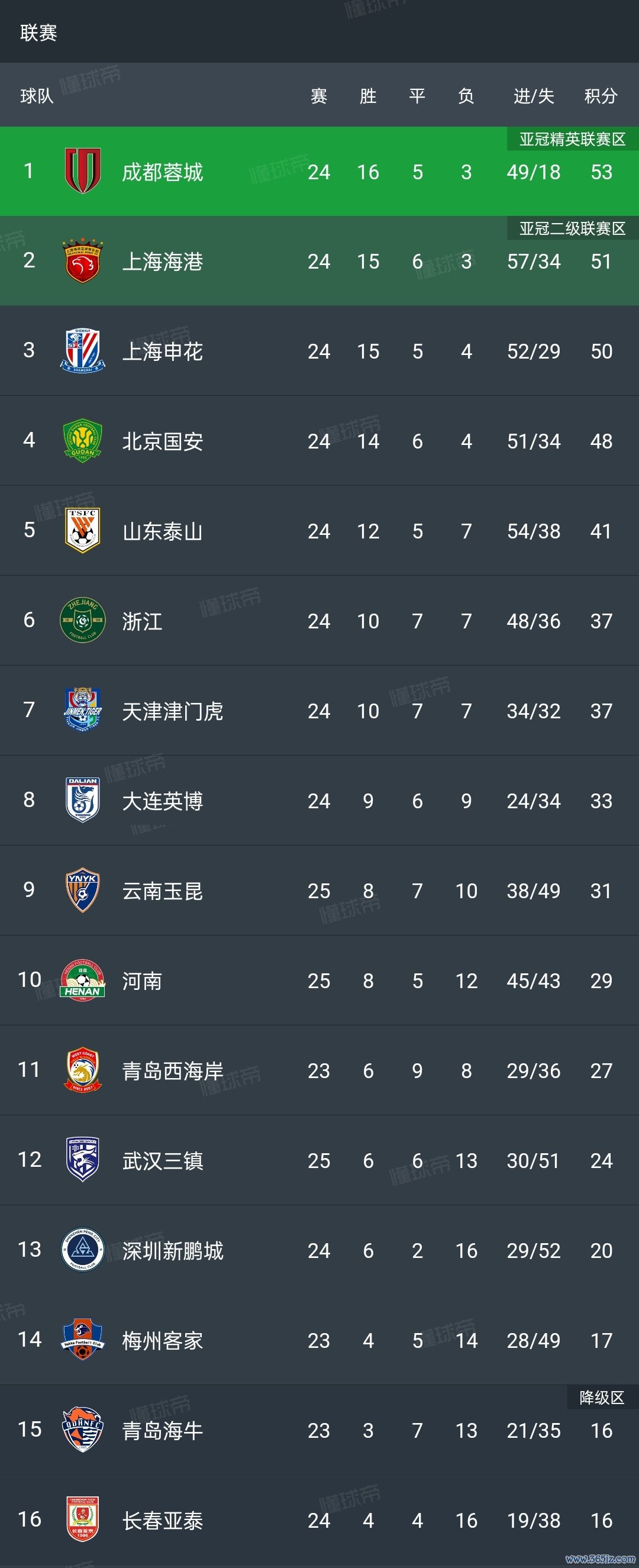 今日两场赛事 结束之后,中超最新排名如下,河南队积29分升至第10位,武汉三镇积24分排在第12位,多赛两场仅仅高出降级区8分,保级形势严峻,前中超第一名 武汉三镇有危险了,大连英博和云南玉昆可以宣告保级成功,河南队也可以宣告保级成功了。