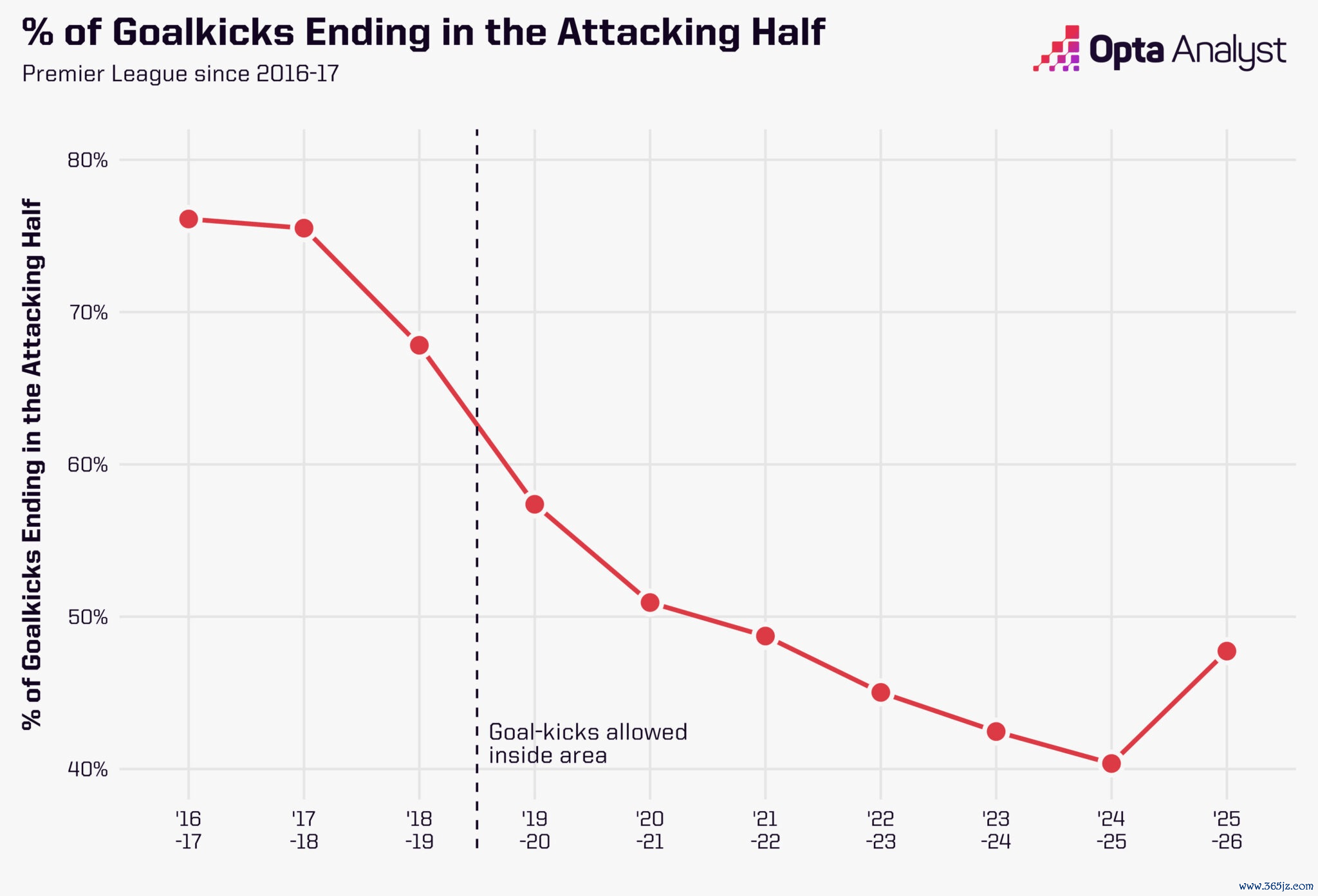 不过在2025-26赛季足球竞彩网, 篮球新闻西甲直播这一趋势出现了十年来的首次反弹, 风云体育网Opta统计本赛季英超前五轮职业联赛 数据,已有48.4%的古代足球 门 球直接开入对方半场,显示出更多球队正重新选择直接打法。