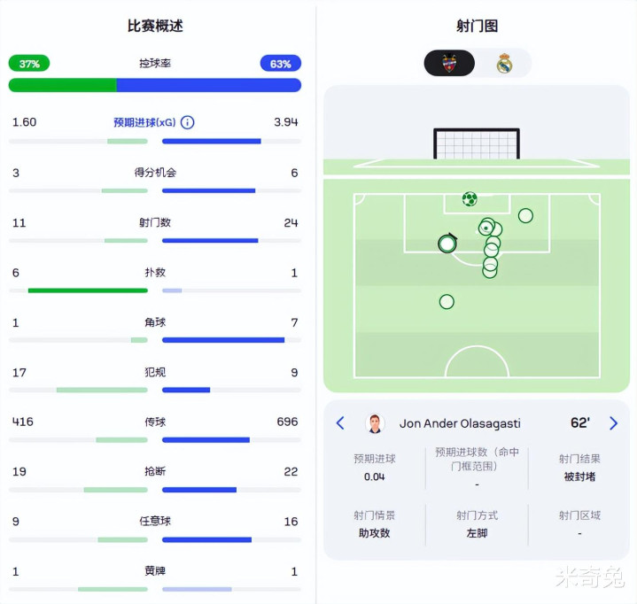 全场赛事 中,莱万特得到了11次射球 机会,其中7次射正,3次是绝佳积分 机会。如果不是十二码球出现的及时,皇马未必能在客场应战 全身而退。